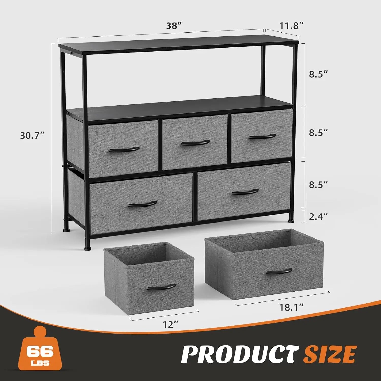 - Lightweight and Versatile: With 5 fabric drawers, easy-pull handles, and wooden board shelves, this TV stand is a lightweight and adaptable addition to any bedroom or living room, suitable as a space-saving alternative to traditional TV stands or as an entertainment center.