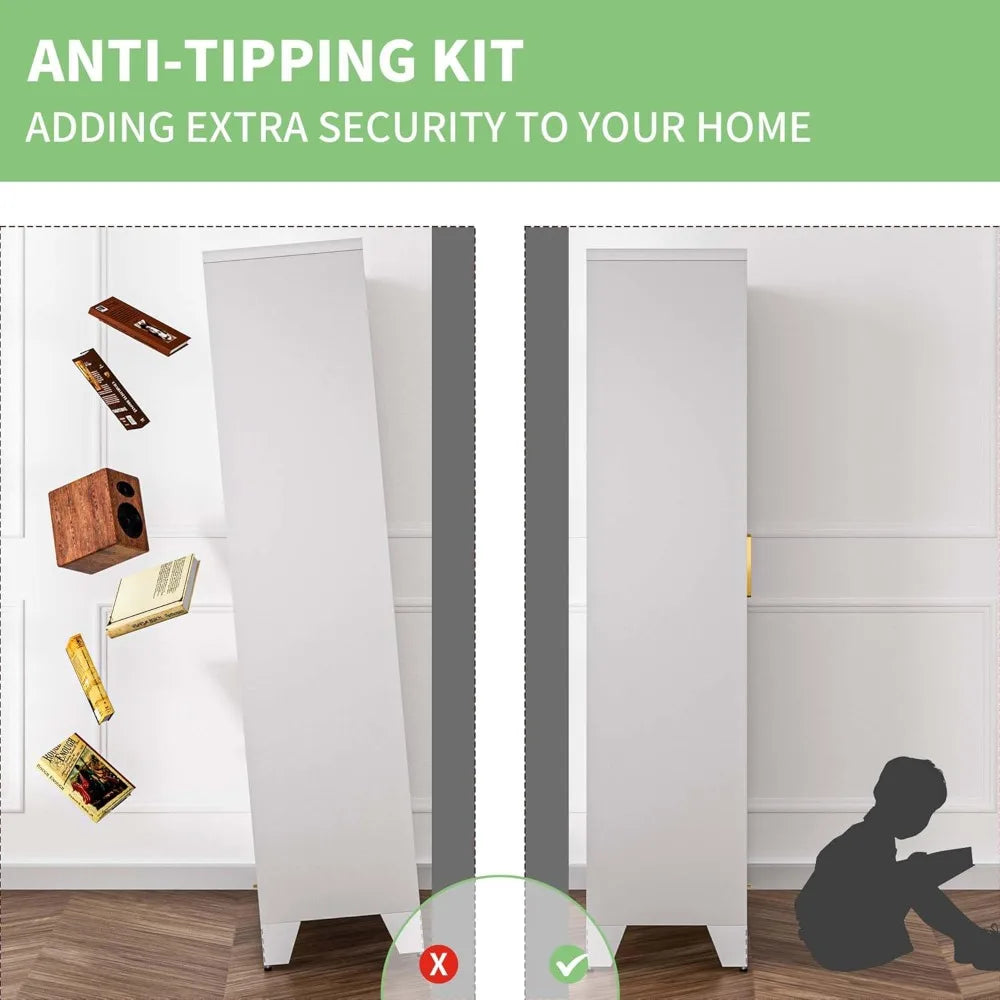 - Stability and Safety: The wardrobe is supported by tapered legs that are both sturdy and visually appealing. Adjustable feet ensure stability on uneven surfaces, while an integrated anti-tip mechanism keeps the wardrobe firmly in place even when subjected to external forces, ensuring the safety of you and your family.